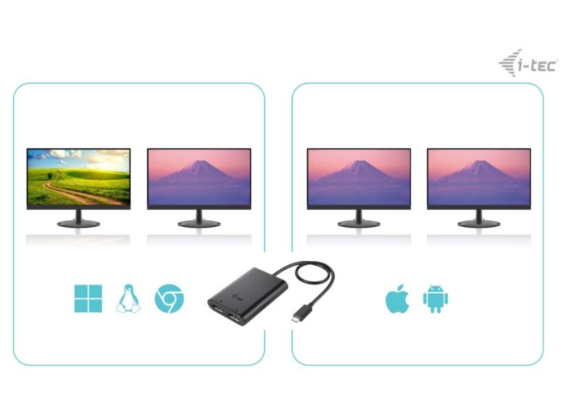 Użytkowanie jest bardzo proste, wystarczy podłączyć adapter do portu USB-C, USB4 lub Thunderbolt 3/4 w komputerze, połączyć go z urządzeniem wyświetlającym za pomocą kabla DisplayPort i można natychmiast rozpocząć korzystanie. Instalacja sterowników odbywa się automatycznie z poziomu systemu. Wydajny adapter wideo USB-C umożliwiający podłączenie do dwóch monitorów jednocześnie Adapter obsługuje rozdzielczość do 1x 8K / 30 Hz lub 2x 4K / 60 Hz. Obsługa dwóch portów DisplayPort Możliwość podłączenia do wszystkich portów USB typu C: USB-C, USB4, Thunderbolt 3, Thunderbolt 4 Adapter jest kompatybilny ze wszystkimi głównymi systemami operacyjnymi Podłączenie nie wymaga instalacji (Plug & Play) UWAGA: W systemie macOS obsługiwany jest tylko jeden monitor zewnętrzny