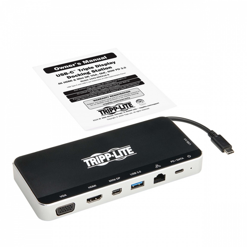 Stacja dokująca USB, potrójny wyświetlacz 4K HDMI i mDP, VGA, USB 3.2 Gen 1, koncentrator USB-A/C, GbE, ładowanie PD 60W U442-DOCK16-B
