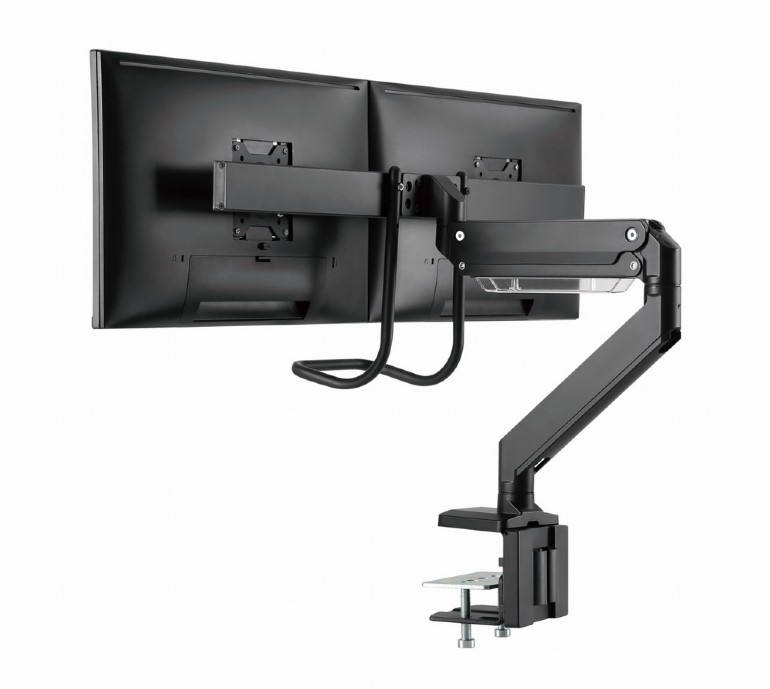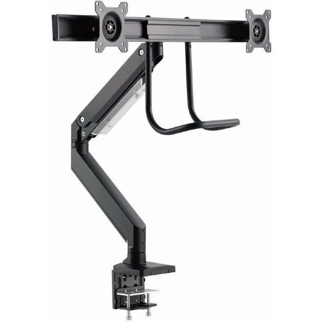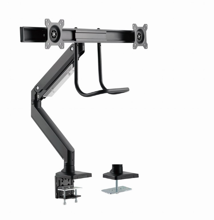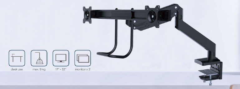 Regulowane ramię monitora montowane na biurku na 2 monitory Ustaw ekran idealnie Lekka i odchylana konstrukcja Uchwyt biurkowy do monitora z pojedynczym ramieniem na 2 monitory Ramię obraca się, rozciąga i chowa oraz przechyla, aby zmienić kąt odczytu Listwa montażowa monitora do montażu 2 monitorów obok siebie Umożliwia łatwe, ergonomiczne pozycjonowanie w celu zmniejszenia obciążenia Współpracuje z prawie każdym monitorem LCD (maks. 32") Wytrzymałe, regulowane sprężyny gazowe odpowiednie do monitorów o wadze 28 kg Mocny zacisk biurkowy lub przelotka do łatwego i bezpiecznego mocowania na biurku