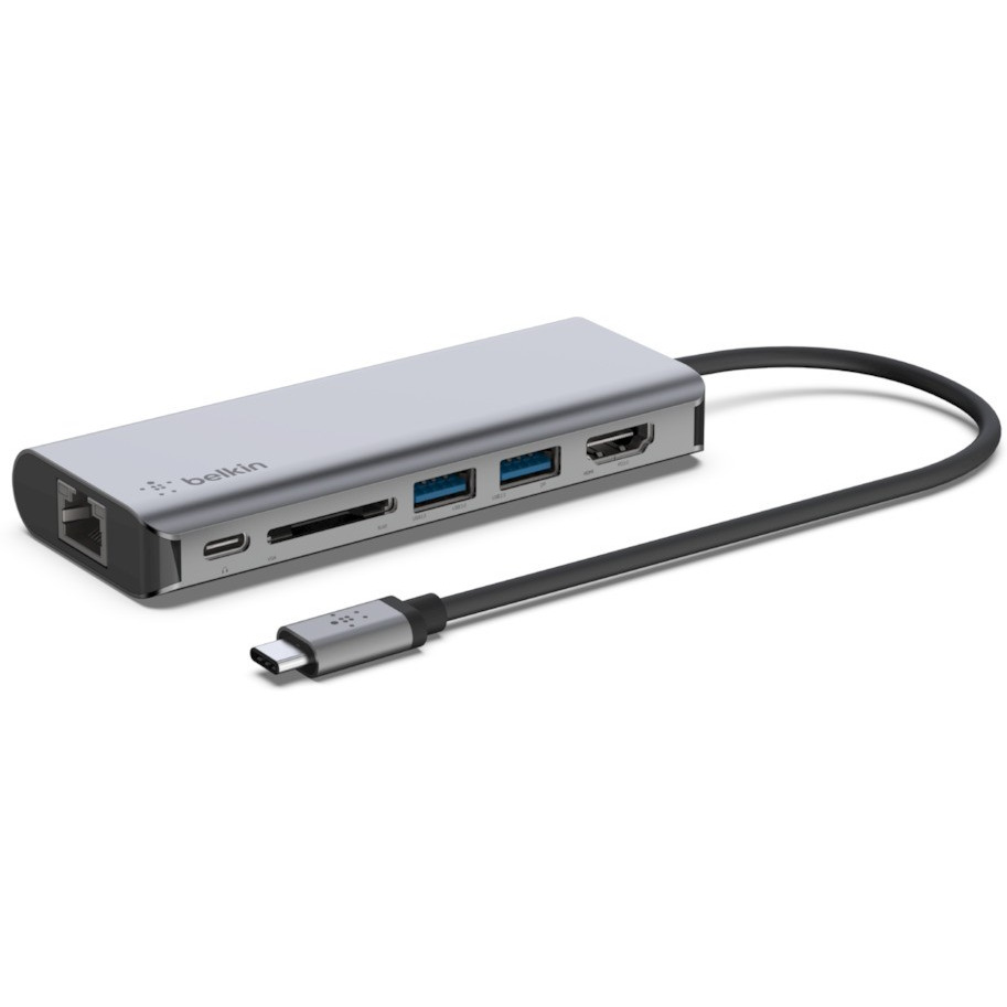 Z łatwością podłącz laptopa do wielu urządzeń za pomocą naszego wieloportowego adaptera USB-C 6-w-1. To kompleksowe rozwiązanie rozszerza port USB-C komputera do portu HDMI, 2 portów USB-A, portu Ethernet, czytnika kart SD i portu USB-C PD, zapewniając porty, które nowsze laptopy wyeliminowały w ostatnich latach. Ponadto obsługuje ładowanie przelotowe do 100 W, eliminując potrzebę wyboru między rozszerzeniem portu a zasilaniem. Smukła, kompaktowa i gotowa do podróży konstrukcja naszego wieloportowego adaptera USB-C 6-w-1 jest idealna dla tych, którzy mają wiele stacji roboczych lub chcą uporządkować biurko. Obsługuje rozdzielczości 4K i do 5 Gb/s przepustowości do szybkiego przesyłania danych między laptopem a urządzeniami peryferyjnymi. Podłącz laptopa ze złączem USB-C do wielu urządzeń Rozszerza port USB-C do portu HDMI, 2 porty USB-A 3.0 BC1.2, port Gigabit Ethernet, czytnik kart SD i port USB-C PD Zasilaj i ładuj urządzenia zużywające dużo energii, takie jak dyski twarde, telefony i tablety, dzięki portom USB-A 3.0 BC1.2 Obsługuje ładowanie przelotowe do 100 W. Kompaktowa konstrukcja zapewnia łatwą mobilność i zmniejsza bałagan na biurku Przepustowość 5 Gb/s do szybkiego przesyłania danych między komputerem a urządzeniami peryferyjnymi Port HDMI obsługuje do rozdzielczości 4K przy 30 Hz