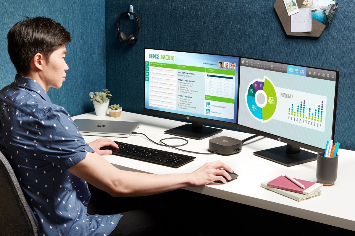 Miej wszystko, czego potrzebujesz, aby wykonać pracę dzięki tej kompaktowej stacji dokującej, która utrzymuje biurko w czystości. Za pomocą jednego kabla USB-C otwórz porty na wszystkie akcesoria, podłącz do trzech wyświetlaczy o wysokiej rozdzielczości,] stabilne połączenie Ethernet i wiele więcej a wszystko to podczas ładowania laptopa. Oczyść swoje biurko i umysł dzięki tej stacji dokującej HP USB-C G5 Essential