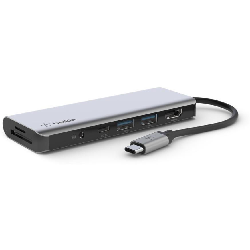 Ten smukły, przenośny adapter USB-C umożliwia łatwe tworzenie stacji roboczej w dowolnym miejscu i ułatwia podróżowanie między obszarami roboczymi. Dzięki ładowaniu przelotowemu do 100 W nie trzeba wybierać między rozszerzeniem portu a zasilaniem.