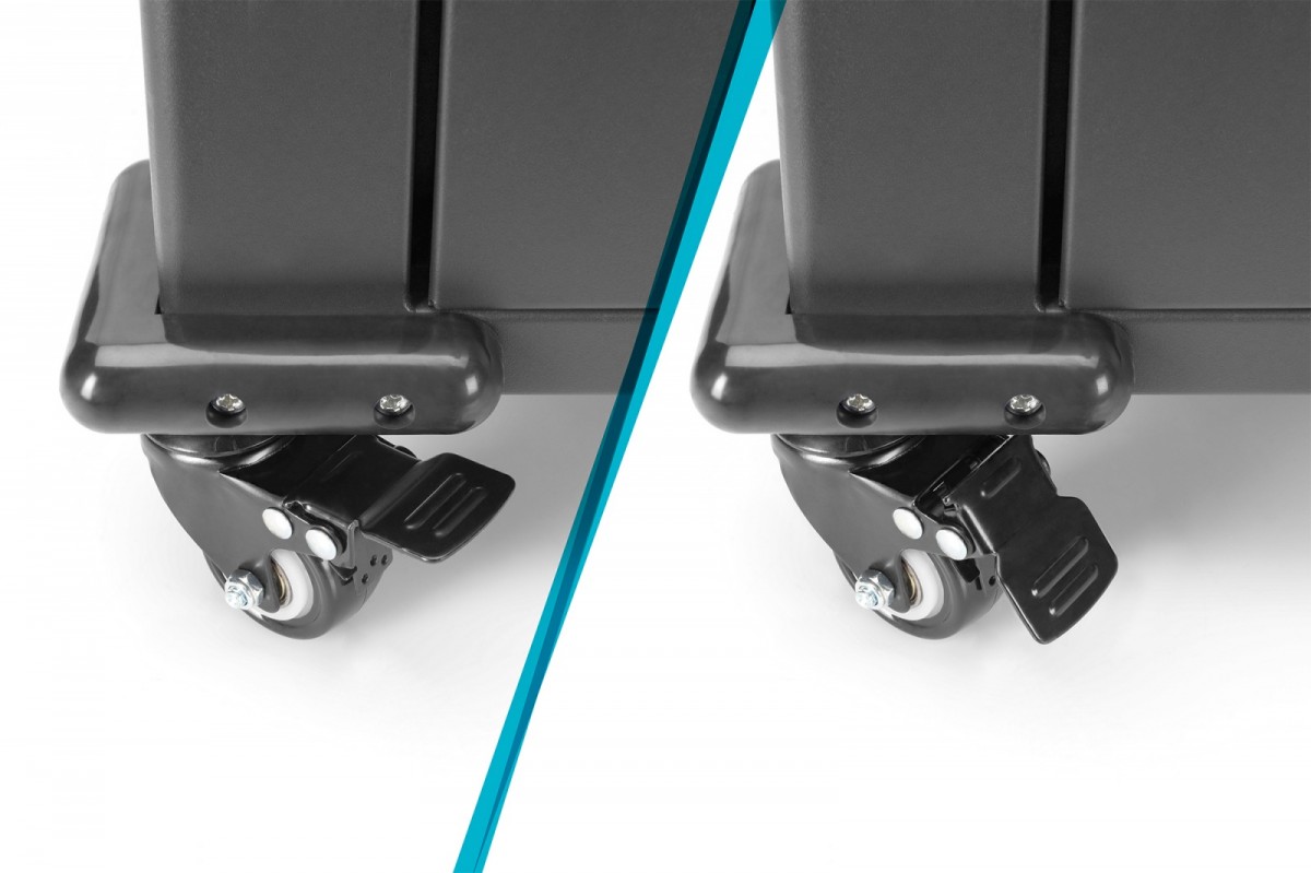 Mobilna szafa do ładowania firmy DIGITUS jest kompaktowym rozwiązaniem do przechowywania i ładowania urządzeń przenośnych, takich jak notebooki i tablety. Mobilne szafy do ładowania są często wykorzystywane w obiektach użyteczności publicznej, takich jak szkoły, do bezpiecznego przechowywania urządzeń w jednym miejscu, a ponadto ich jednoczesnego ładowania. Szafka zawiera 16 półek do ładowania, przy czym każda dysponuje własnym portem USB z przodu. Wbudowany wentylator (24 V) w połączeniu ze szczelinami wentylacyjnymi zapewnia aktywne chłodzenie szafki. 16 miejsc dla urządzeń Głębokość wewnętrznej półki: 330 mm (nadaje się na urządzenia do 14) 16 x złącza USB A Wydajność wyjściowa portu USB-A: 10 W (5 V 2,1 A) na port; maks. 160 W Kompaktowa obudowa, mobilna dzięki zamontowanym rolkom W zestawie 4 rolki (2 rolki z blokadą) Drzwi przednie szklane, pojedyncze Drzwi przednie z kompletnej ramy metalowej ze szkłem bezpiecznym Elektroniczny zamek cyfrowy z kodem PIN Kąt otwarcia drzwi 180° Dołączone uchwyty zapewniające lepszą mobilność Włącznik/wyłącznik z przodu Przyłącza C20 i USB z tyłu Kontrola temperatury: Wentylatory uruchamiają się automatycznie, gdy temperatura wewnątrz przekroczy 40°C 1 x wentylatory (24 V) do aktywnego chłodzenia szafy Z wyłącznikiem różnicowoprądowym 30 mA Kolor: Czarny, RAL 9005 Panele boczne: Z dwóch stron Zmontowana: tak