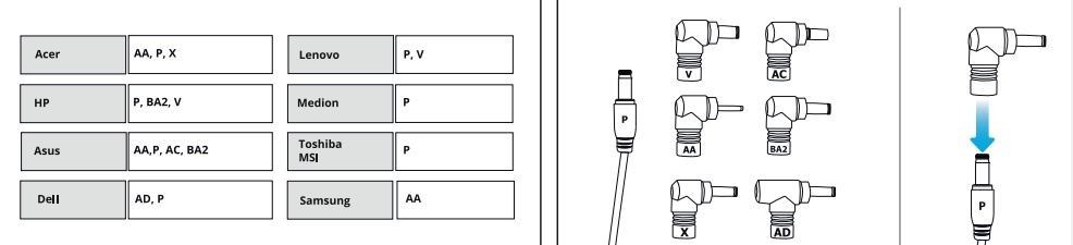 - Do użytku z laptopami Acer, Asus, Dell, HP, Lenovo, Medion, MSI, Packard Bell * i Samsung *