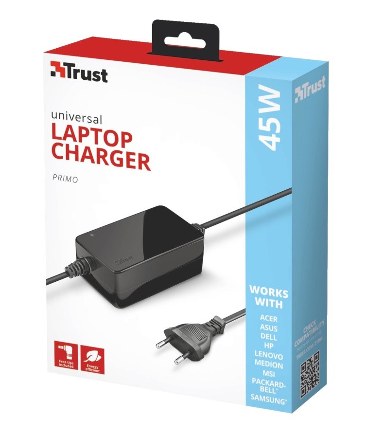 Uniwersalna ładowarka 45 W do laptopa, która współpracuje z praktycznie każdym laptopem.