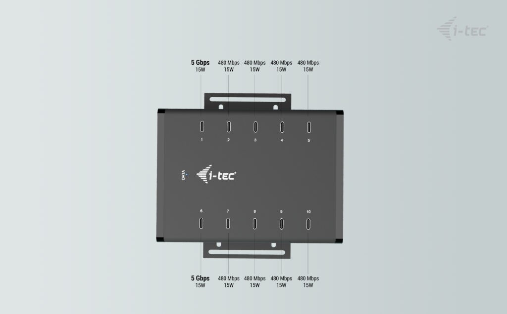 !i-tec USB-C/USB-A Metal Charging + data HUB 15W per port 10x USB-C