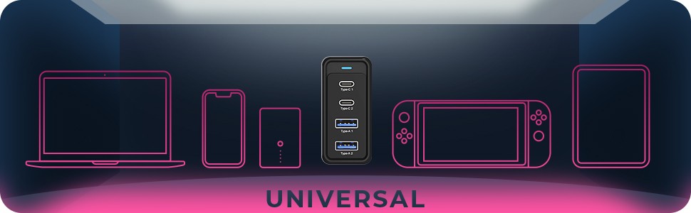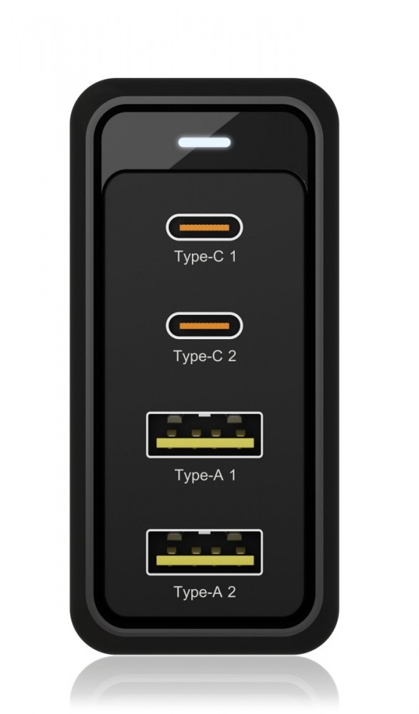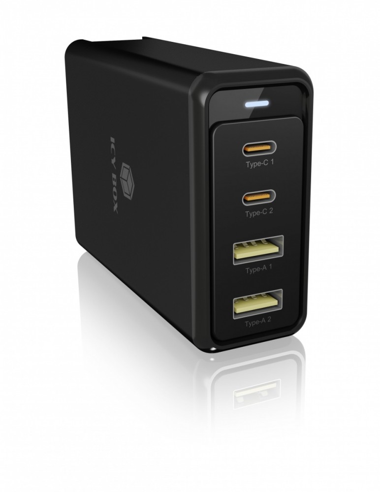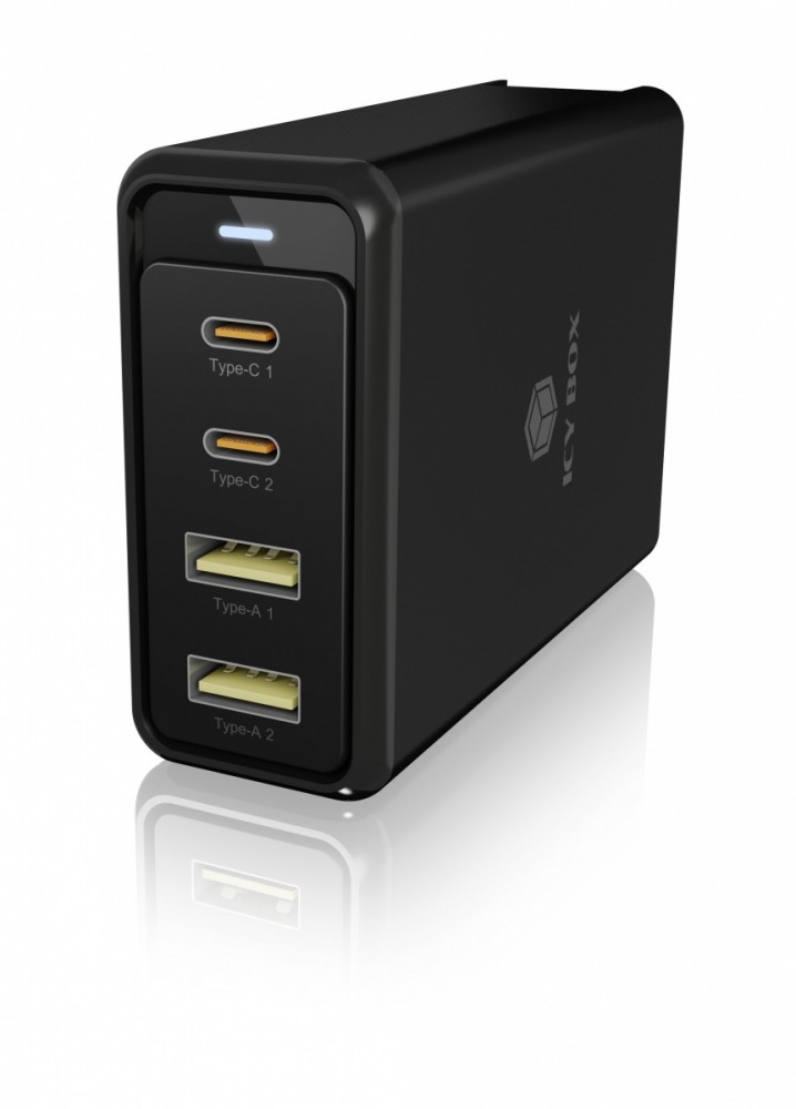 Ładowarka z 4 portami z obsługą Power Delivery 3.0 i GaN IB-PS104-PD to zasilacz wtykowy z czterema interfejsami do notebooków i urządzeń mobilnych. Dzięki Power Delivery 3.0 o mocy do 100 W może ładować notebooki, smartfony i tablety. Dostępne są dwa porty USB Type-C i dwa porty USB Type-A. Kompaktowa konstrukcja jest nie tylko idealna do użytku w podróży, ale dodatkowy adapter brytyjski zapewnia elastyczność podczas podróży.