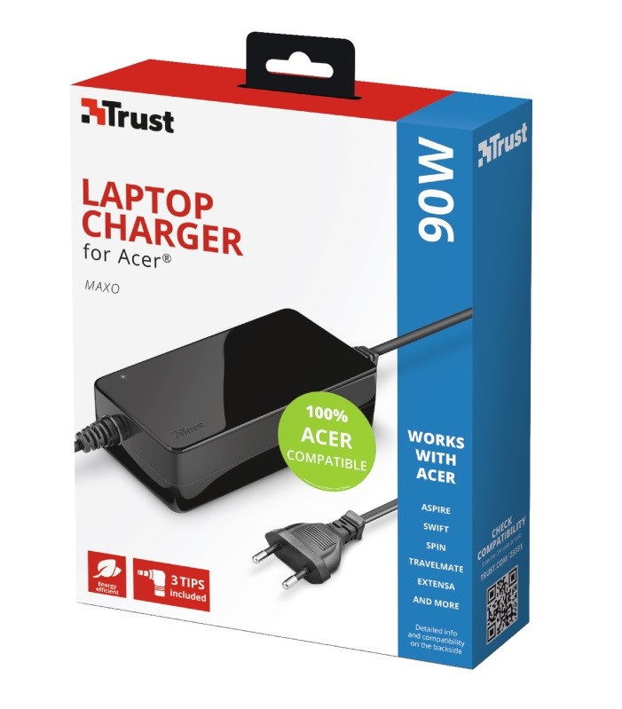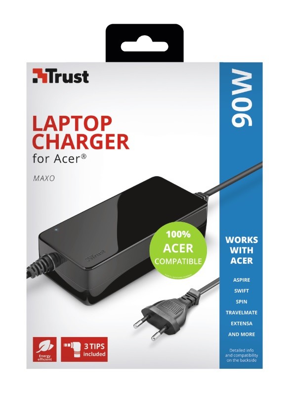 Zasilacz komputerowy MAXO ACER 90W Ładowarka do laptopów Acer o mocy wyjściowej 90 W Łatwy w użyciu: użyj końcówki pasującej do laptopa i gotowe Idealny do podróży: kompaktowy rozmiar i działa na 100-240 V AC Paski na rzepy, aby dobrze uporządkować kable Trwała, niezawodna i energooszczędna konstrukcja Inteligentny system ochrony zapewniający bezpieczne i szybkie ładowanie Kompatybilny z laptopami wymagającymi mocy 18-20 V i 90 W lub mniej