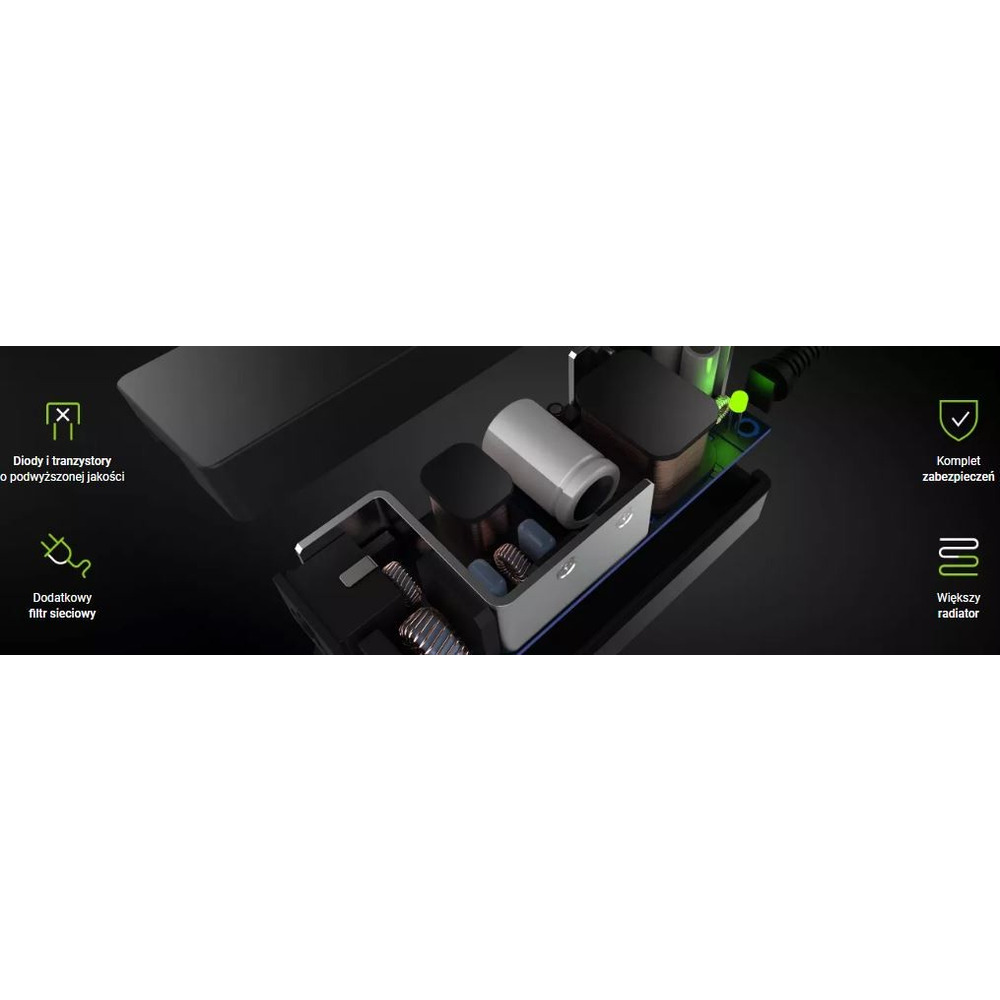 Przemyślana konstrukcja i wysoka jakość komponentów wpływają na podwyższoną trwałość ładowarki. Dodatkowy filtr sieciowy filtruje napięcie już na wejściu zasilacza, a większy radiator efektywniej odprowadza ciepło dzięki czemu ładowarka nie nagrzewa się. Wszystko to sprawia, że zasilacz jest zdumiewająco wytrzymały i może pracować bezawaryjnie latami.