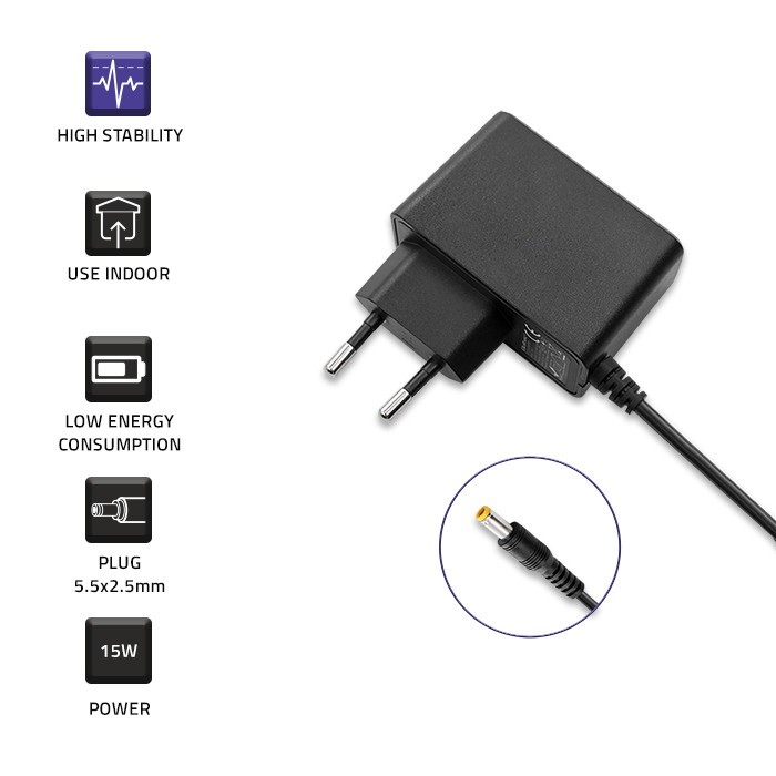 Zasilacz wtyczkowy 15W | 15V | 1A | 5.5*2.5