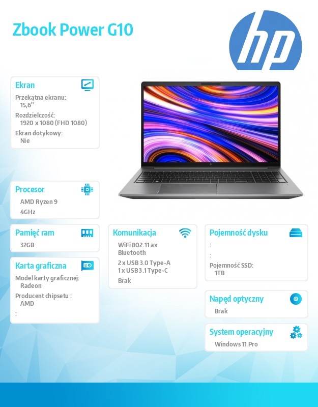 Mobilna stacja robocza Zbook Power G10/W11P R7-7840HS 1TB/32 866B1EA