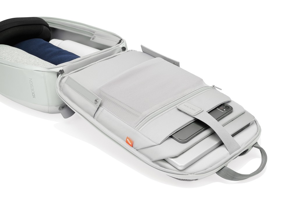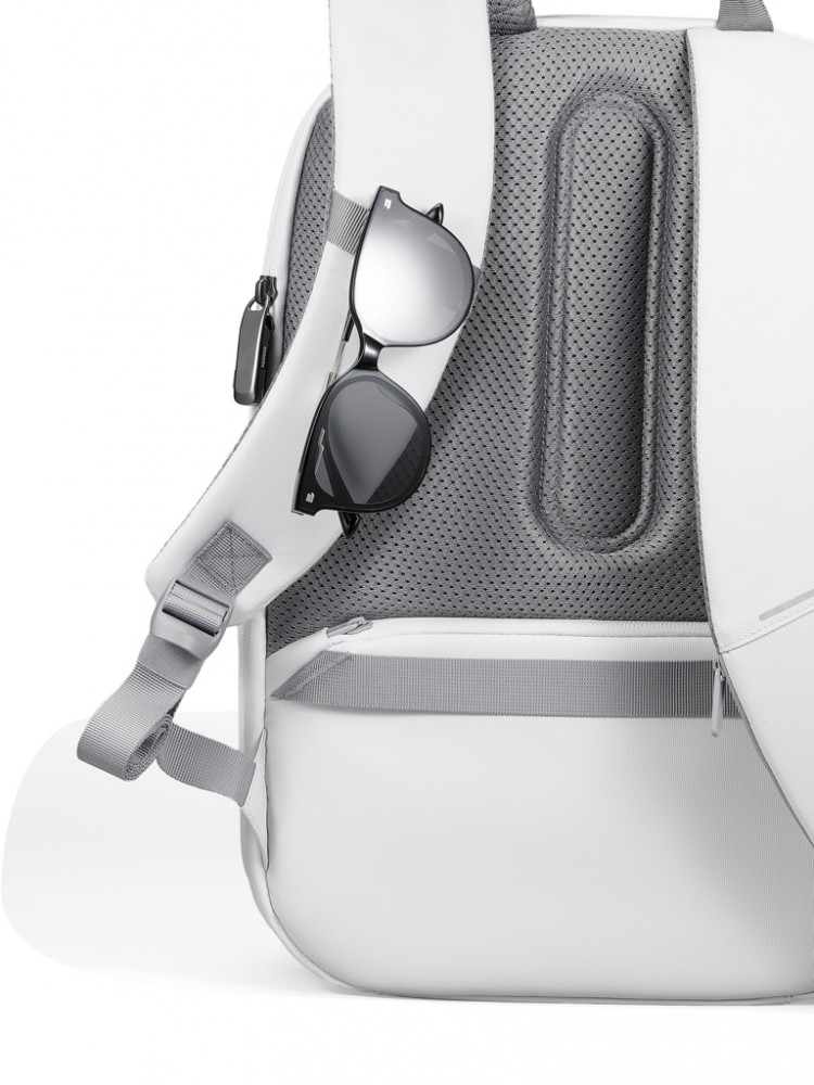 Plecak Bobby Edge Antykradzieżowa konstrukcja Metalowy zamek z blokadą Przemyślana organizacja wnętrza Wodoodporność materiału Wodoszczelne zamki YKK Ukryta kieszeń Dyskretna kieszeń na tylnym panelu zabezpieczona przed skanowaniem RFID Niewielka waga plecaka Kąt rozwarcia otwarcia plecaka 180° Pasek typu Luggage-strap Wyściełana polarowa komora na laptopa Smycz na klucze Kieszonka na karty na pasku naramienny Uchwyt na okulary przeciwsłoneczne