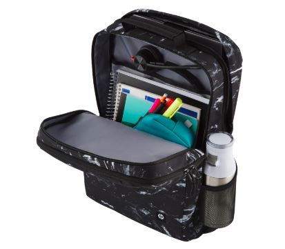 Znajdź miejsce na wszystko w jednej świetnej, dużej, zorganizowanej torbie. Posiada dużą komorę główną na książki i inne rzeczy, dedykowaną wyściełaną przegrodę na laptopa 16 cali, szybko dostępną kieszeń na akcesoria, wewnętrzny piórnik, dwie boczne kieszenie na butelki z wodą i pętle z taśmy do przypięcia czegokolwiek innego. 20 litrów zorganizowanej pojemności na wszystko, czego potrzebujesz.