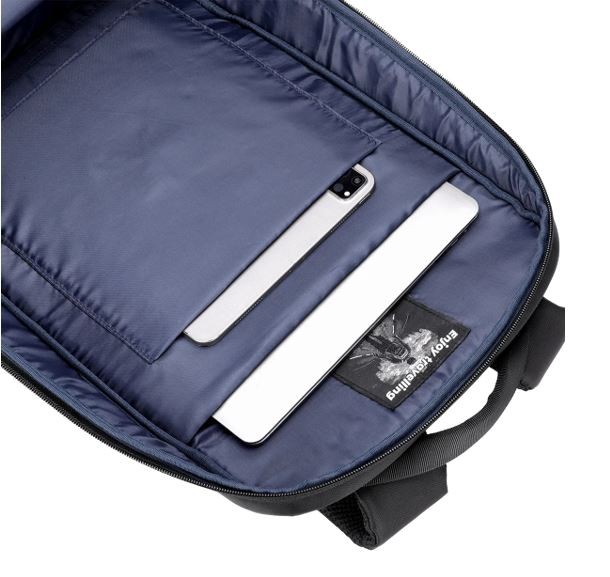 Wnętrze plecaka zostało optymalnie zaprojektowane dla jak największej użyteczności. Jest tu przegroda w komorze głównej na laptopa oraz cztery kieszenie m.in. na dokumenty, akcesoria, notes etc. Praktyczne otwarcie komory głównej zapewnia optymalną wygodę sięgnięcia po jej zawartość.