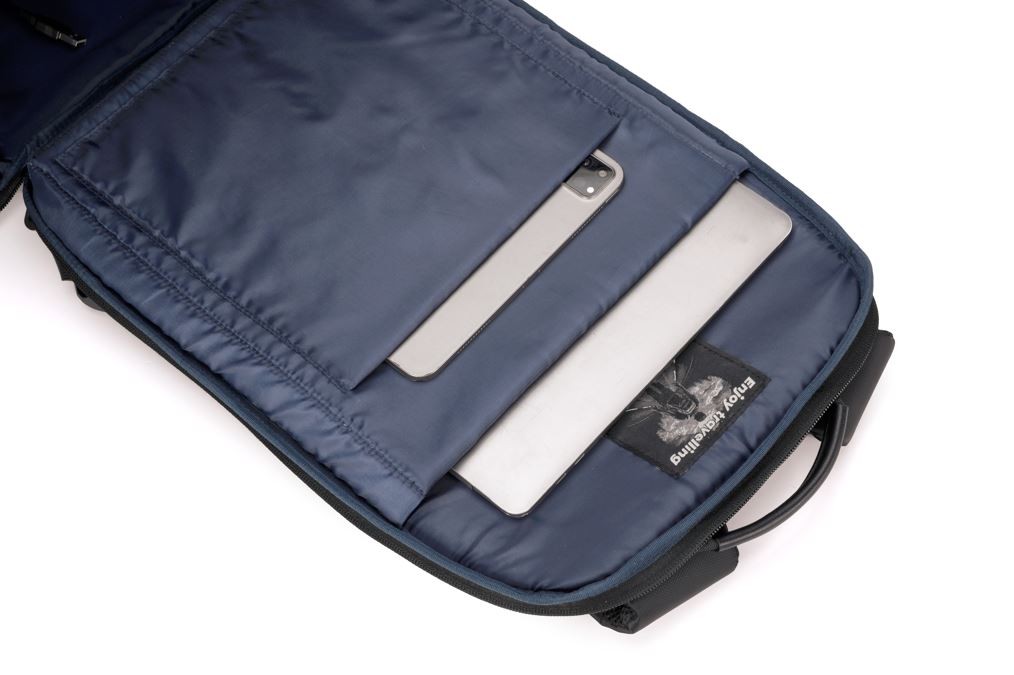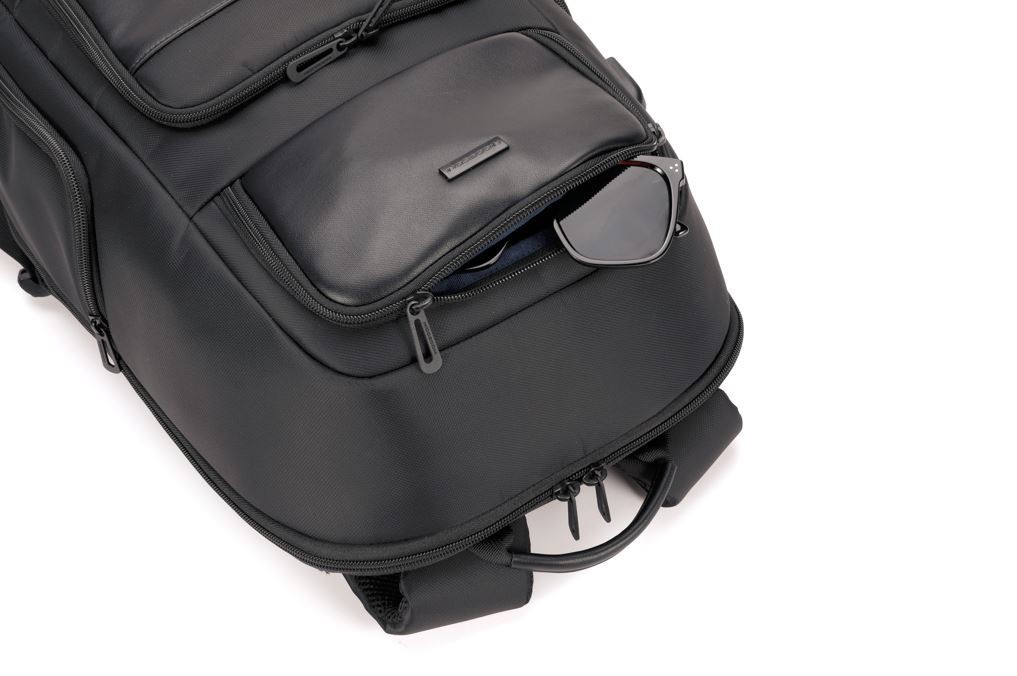 Wnętrze plecaka zostało optymalnie zaprojektowane dla jak największej użyteczności. Jest tu przegroda w komorze głównej na laptopa oraz cztery kieszenie m.in. na dokumenty, akcesoria, notes etc. Praktyczne otwarcie komory głównej zapewnia optymalną wygodę sięgnięcia po jej zawartość.