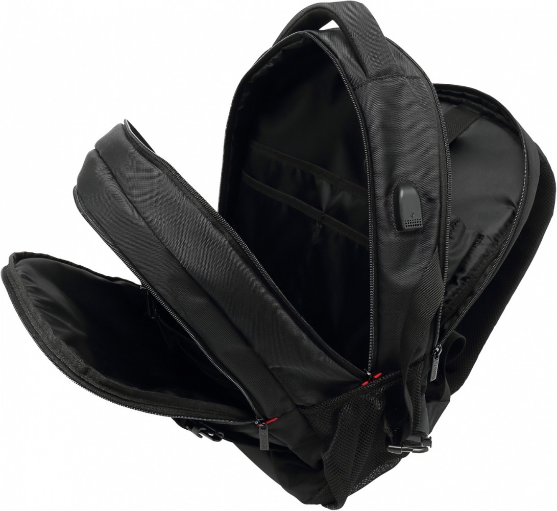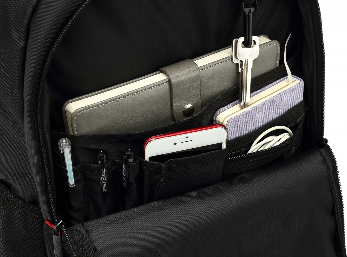 Plecak do laptopa YBB 1502 FLASH uniwersalny 15.6 cali Wielofunkcyjny plecak odpowiedni do notebooków 15,6" Maksymalna ochrona i duża pojemność Tapicerowane szelki i port USB Business casual i praktyczny design Wysokiej jakości lekki plecak z dodatkowymi komorami i kieszeniami zapewniający optymalną ochronę notebooka. Design dostosowany jest do środowiska miejskiego i stanowi doskonałe rozwiązanie dla tych, którzy często podróżują, spędzają czas w tłocznych miejscach, korzystają z komunikacji miejskiej lub latają samolotami. Plecak jest przeznaczony do przenoszenia podstawowych ubrań, notebooków do 15,6", tabletów lub innych urządzeń elektronicznych, dokumentów itp. Dzięki umieszczonemu z boku i dobrze dostępnemu portowi USB, które można podłączyć do Power Banku w kieszenie wewnętrznej, plecak jest świetnym rozwiązaniem dla tych, którzy często muszą ładować telefon w podróży lub po prostu chcą mieć łatwy dostęp do źródła zasilania zawsze i wszędzie. Aby mieć natychmiastowy dostęp do jakiegokolwiek przenoszonego urządzenia lub sprzęty, można użyć solidnych obustronnych zamków, które pozwolą otworzyć torbę w najlepszej pozycji. Torbę da się przymocować do rękojeści walizki podróżnej, co może ułatwić podróżowanie.