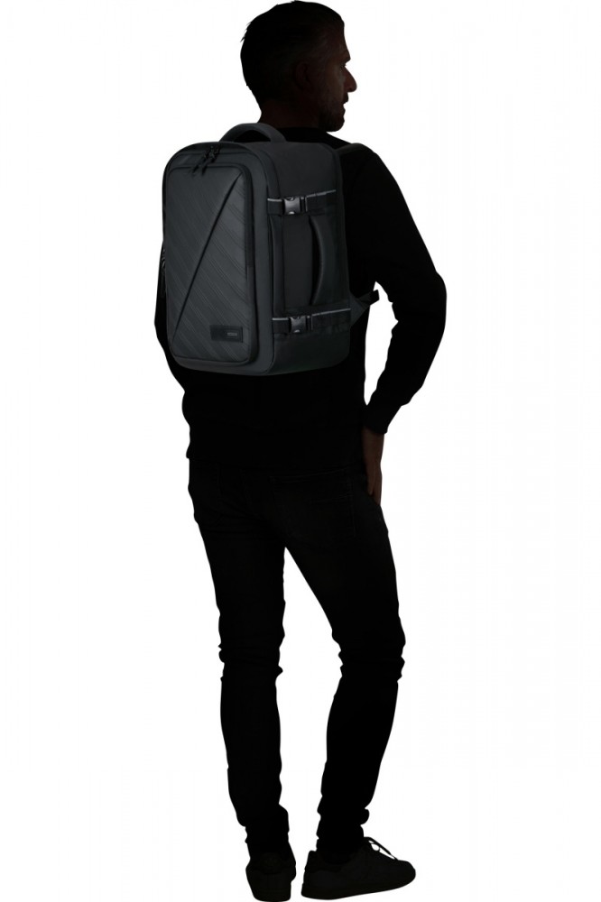 Najważniejsze cechy plecaka American Tourister Take2Cabin S: Mały plecak miejski, codzienny, na laptopa, biznesowy Bagaż podróżny kabinowy Plecak na bagaż podręczny Pojemna komora główna na odzież Pasy mocujące w komorze głównej Miękki uchwyt górny do przenoszenia Pas z tyłu do mocowania na walizce Ergonomiczne, wyściełane pasy ramienne Wyściełany panel tylny z panelami z przewiewną siateczką dla Twojego komfortu Przednia kieszeń łatwego dostępu na małe przedmioty Logo z przodu