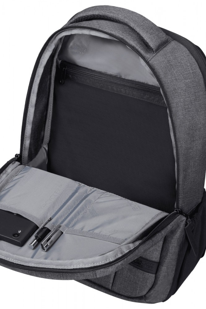 Plecak posiada kieszeń na laptopa o przekątnej 14" oraz osobną kieszeń na tablet. System Easy Pass pozwala na przeprowadzanie kabli między komorami plecaka, by wygodnie ładować urządzenia bez ich wyciągania. Dzięki wodoodpornemu materiałowi, nie musisz martwić się o deszcz, a dodatkowe elementy odblaskowe zwiększają twoją widoczność po zmroku.