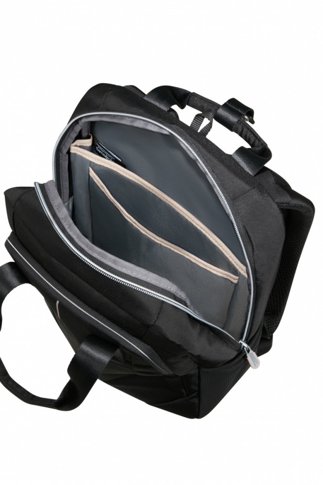 Dedykowane przestrzenie na laptop 14,1'' i tablet 10,5'' zabezpieczają urządzenia w trakcie przenoszenia. Uzupełnieniem są przednia kieszeń na suwak i boczne kieszenie, które ułatwiają wygodne rozmieszczenie dokumentów oraz drobnych elementów wyposażenia.