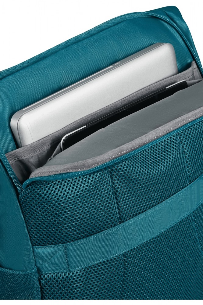 Funkcjonalność: Przestronny plecak z komorą główną i przemyślanym wnętrzem Wykonany z materiału Recyclex Lekka konstrukcja o wadze 0,6 kg Pojemność 20,5 L z miejscem na laptopa do 15,6" Ergonomiczne szelki i wygodny uchwyt na górze Kieszenie zewnętrzne: przednia i tylna Smart sleeve umożliwiający przymocowanie plecaka do walizki Uchwyt na butelkę