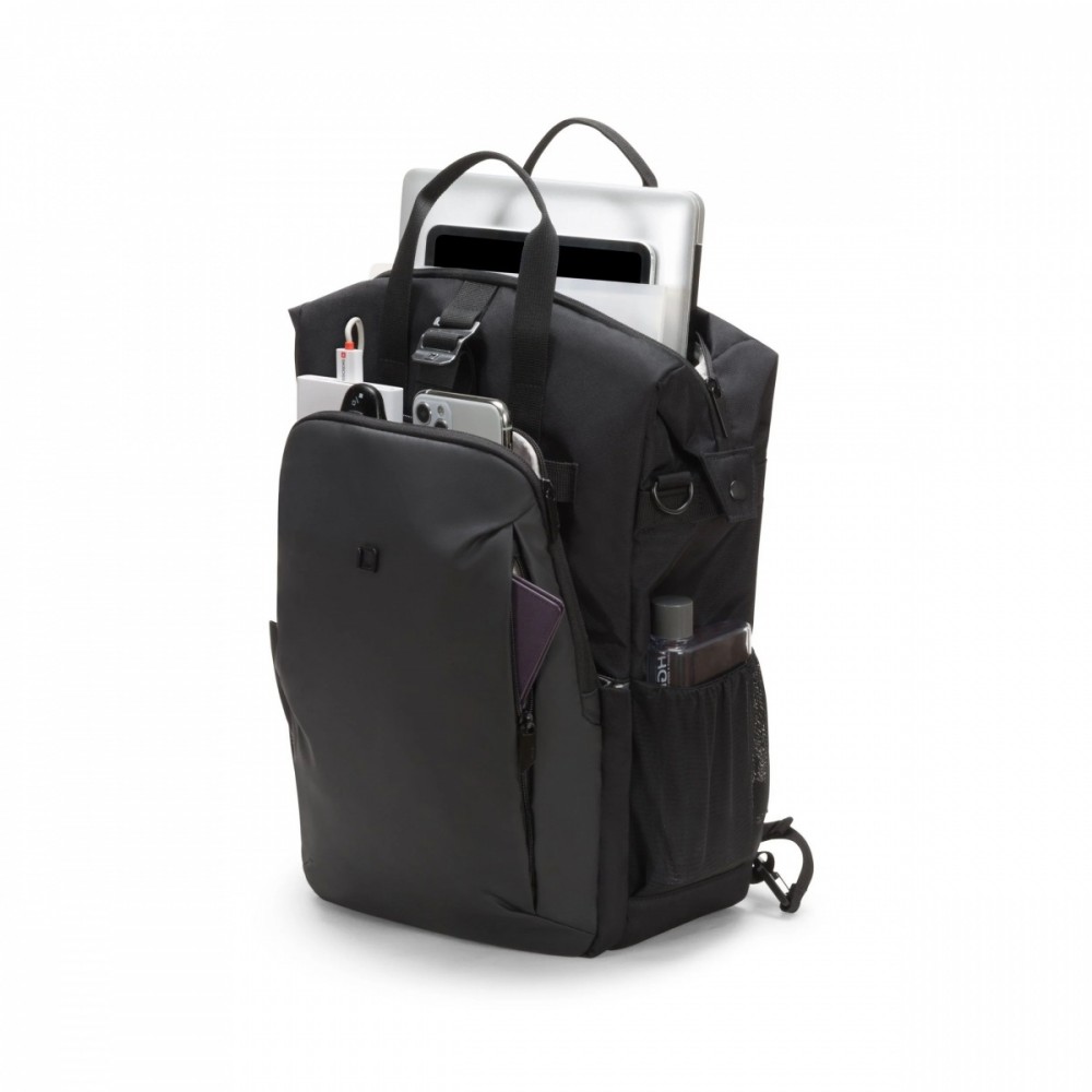 Plecak Eco Dual GO optymalnie chroni laptopa Surface dzięki wyściełanej komorze na notebooka. Dopasowana przegroda chroni notebooka Surface i automatycznie dostosowuje się do rozmiarów do 15". Gniazdo na tablety zapewnia niezawodną ochronę urządzeń o przekątnej do 12,9". Błyskawicznie przekształca torbę z teczki w plecak dzięki chowanym paskom plecaka i odłączanemu, wyściełanemu paskowi na ramię. Przestronna komora główna jest podzielona, dzięki czemu dokumenty i akcesoria można przechowywać oddzielnie. Główną komorę można rozszerzyć za pomocą zamka błyskawicznego, aby uzyskać jeszcze więcej miejsca do przechowywania. W komorze głównej znajduje się również kieszeń z siatki, w której można schować butelkę z napojem. Otwarta, rozszerzalna komora na sprzęt sportowy, taki jak buty, kask lub matę do jogi, z elastycznymi kieszeniami bocznymi i metalowymi haczykami do mocowania. Przednia kieszeń z praktycznymi kieszeniami pozwala uporządkować akcesoria mobilne, takie jak smartfony, długopisy lub ładowarki. Ukryta kieszeń zapinana na zamek na paszport, portfel itp. Kieszeń wykonana z wodoodpornego materiału chroni zawartość nawet w deszczowe dni. To sprawia, że plecak Eco Dual GO jest idealną torbą dla każdego, kto dużo podróżuje i chce wspierać rozsądne ponowne wykorzystanie butelek PET za pomocą przyjaznego dla środowiska rozwiązania do przenoszenia.