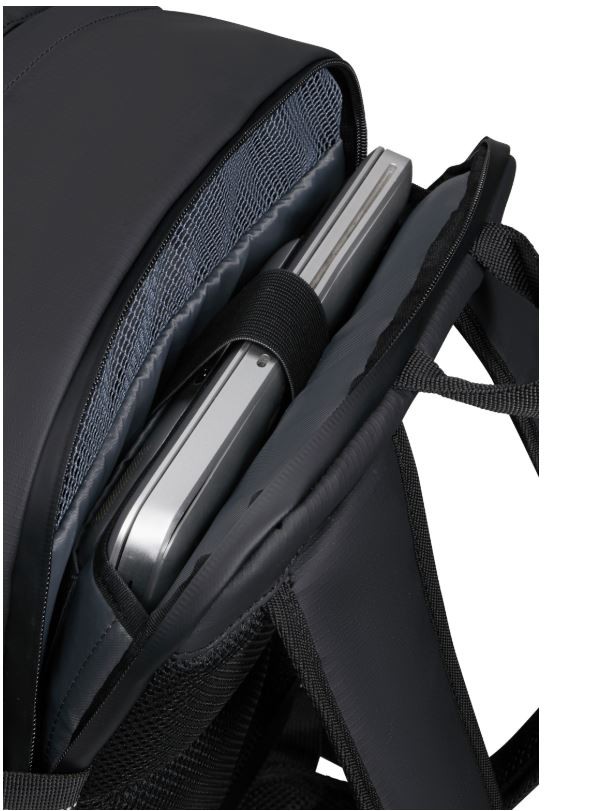 Wnętrze: Wewnętrzny organizator Co najmniej 85% wagowo tkaniny zewnętrznej i co najmniej 100% wagowo podszewki wewnętrznej jest wykonane z plastiku PET pochodzącego z recyklingu poużytkowego.