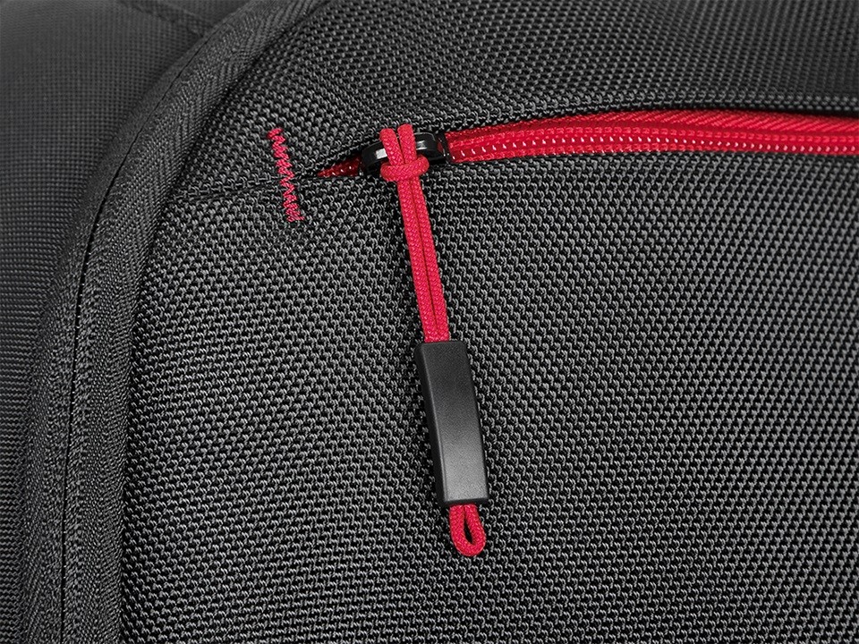 Cechy i zalety: Przyjazny dla środowiska: Wykonany z materiału pochodzącego z recyklingu, co odpowiada ponad 8 plastikowym butelkom Dedykowana, oddzielna przegroda na laptopa Duża powierzchnia do przechowywania dokumentów i akcesoriów technicznych Przednia kieszeń na suwak pozwala na uporządkowanie mniejszych akcesoriów Przednia kieszeń na telefon komórkowy lub okulary przeciwsłoneczne Wygodne zamki błyskawiczne, wytrzymały uchwyt do przenoszenia, zewnętrzna taśma do mocowania przedmiotów i uchwyt na butelkę z wodą
