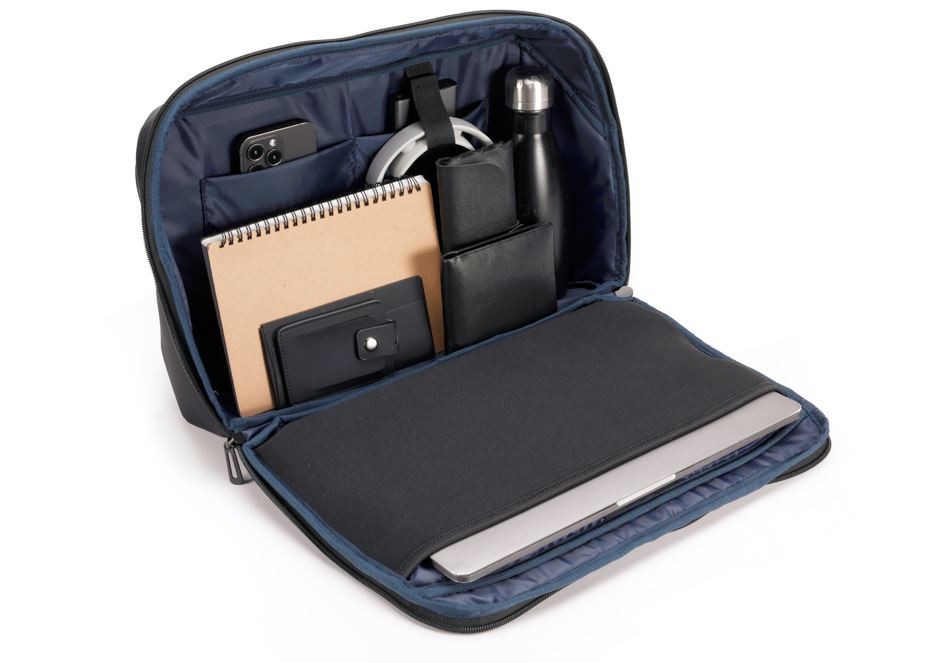 Miejsce na laptopa o przekątnej 15,6. A do tego miejsce na dokumenty i inne niezbędne akcesoria.