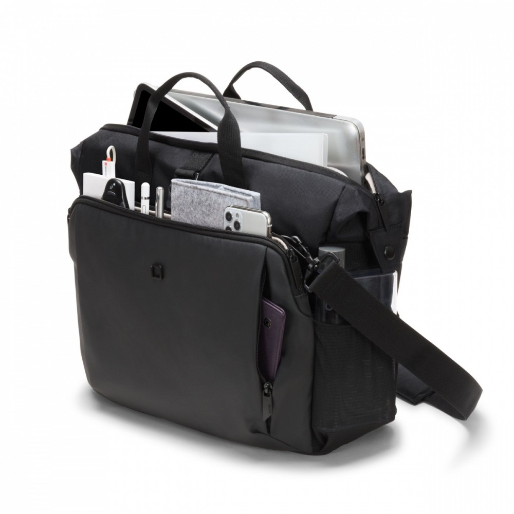 Eco Top Traveler GO zapewnia idealną ochronę laptopów. Ścianka oddzielająca system fitall w komorze notebooka chroni notebooka i automatycznie dopasowuje się do rozmiarów od 13 do 15,6". Kieszeń wsuwana zapewnia niezawodną ochronę tabletom o przekątnej do 12,9". Przestronna część główna jest podzielona tak, aby dokumenty i akcesoria można było przechowywać oddzielnie. Otwarta, rozszerzana przegroda na sprzęt aktywny, taki jak buty sportowe, kask, mata do jogi itp., w tym boczne kieszenie z elastycznej siatki i metalowy haczyk do mocowania. Przednia kieszeń ma praktyczne przegródki, dzięki którym możesz uporządkować akcesoria mobilne, takie jak smartfon, długopisy czy ładowarki. Z tyłu znajduje się komora na dokumenty ułatwiająca przechowywanie dokumentów. Noś torbę wygodnie za uchwyty lub użyj regulowanego, wyściełanego paska na ramię. Torba wykonana jest z wodoodpornego materiału, który chroni zawartość nawet w deszczowe dni. Eco Top Traveler GO jest zatem idealny dla Ciebie, jeśli jesteś zawsze w ruchu i chcesz wesprzeć recykling butelek PET za pomocą ekologicznej torby.