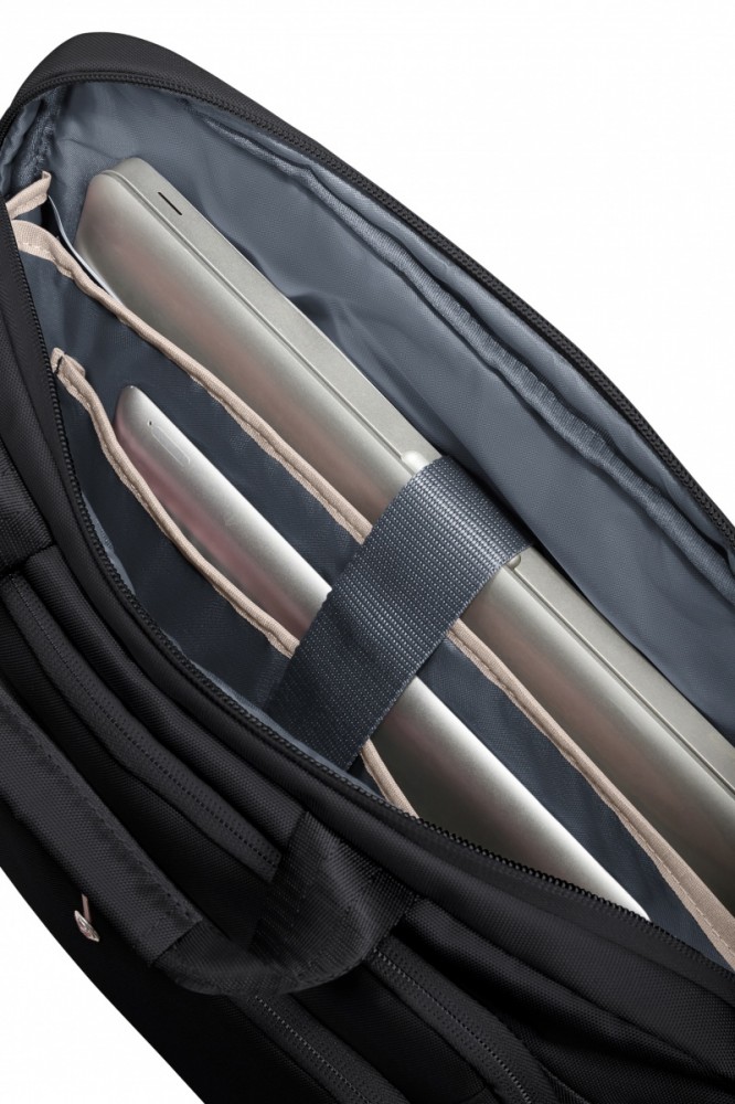 Produkt firmy Samsonite oferuje dedykowane przestrzenie na laptop 15,6'' i tablet 10,5''. Miękkie wyłożenie komór zmniejsza ryzyko zarysowań, a dodatkowe kieszenie umożliwiają szybkie odnalezienie potrzebnych akcesoriów.