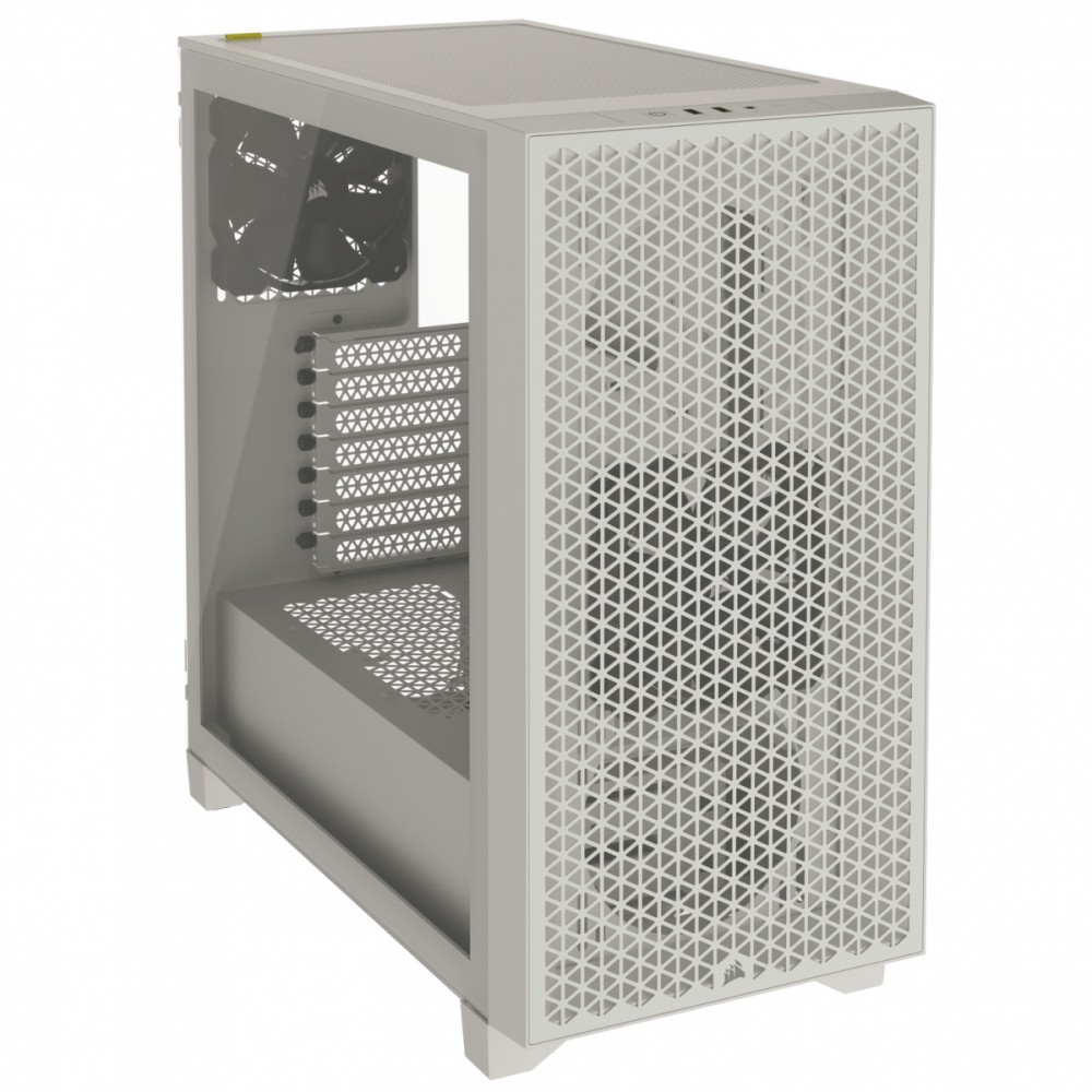 Biała obudowa ATX mid-tower CORSAIR 3000D AIRFLOW zapewnia intensywny obieg powietrza i doskonałe chłodzenie. Stalowy panel przedni i dwa zamontowane fabrycznie wentylatory CORSAIR SP120 ELITE zapewniają optymalny przepływ powietrza przez obudowę, a panel boczny ze szkła hartowanego pozwala wygodnie oglądać komponenty. W inteligentnie zorganizowanym wnętrzu można pomieścić do 8 wentylatorów 120 mm lub do 4 wentylatorów 140 mm. Dzięki miejscu na radiatory o rozmiarze do 360 mm, możliwości montażu dysków o rozmiarze 3,5" i 2,5" oraz obsłudze kart graficznych zajmujących cztery gniazda o długości do 360 mm możesz stworzyć wysokiej klasy wydajny system. Przedni panel wejścia/wyjścia ma dwa porty USB 3.2 Type A i gniazdo mikrofonu i słuchawek. Niezwykłe możliwości chłodzenia: Przestronne wnętrze pomieści nawet 8 wentylatorów chłodzących 120 mm albo 4 wentylatory 140 mm wraz z wieloma radiatorami, w tym jednym z przodu - o rozmiarze 360 mm i jednym w górnej części - o rozmiarze 280 mm (w zależności od wysokości modułów pamięci RAM). Technologia CORSAIR AirGuide: Dwa zamontowane fabrycznie wentylatory SP120 ELITE generują 24,7 dBA hałasu i mają technologię CORSAIR AirGuide, która zwiększa ciśnienie statyczne i nadaje kierunek przepływowi powietrza w celu lepszego chłodzenia. Specjalne chłodzenie karty graficznej: Obudowa mieści najnowsze karty graficzne i ma dwa dodatkowe uchwyty montażowe do wentylatorów 120 mm na osłonie zasilacza, które umożliwiają instalację wentylatorów kierujących przepływ powietrza bezpośrednio do karty graficznej. Możliwość montażu kart graficznych obejmujących cztery gniazda: Aby uzyskać zaawansowany, wysokowydajny zestaw komputerowy, można swobodnie zainstalować w obudowie czterogniazdową kartę graficzną o długości do 360 mm. Zoptymalizowany panel przedni umożliwiający intensywny obieg powietrza: Zoptymalizowany stalowy panel przedni zapewnia potężny przepływ powietrza w zestawie komputerowym i jego maksymalne chłodzenie. Panel boczny z hartowanego szkła: Pokaż swoje wewnętrzne komponenty w eleganckim stylu. Tyle pamięci masowej, ile potrzebujesz: Pomieści nawet 2 dyski SSD i 2 dyski HDD.