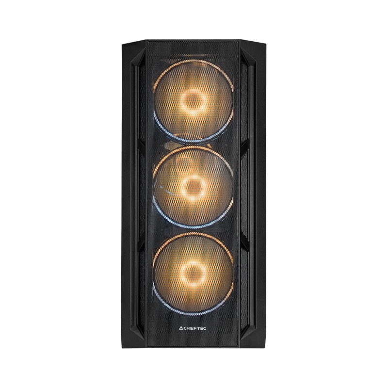 CHIEFTEC APEX Lumo prezentuje obudowę E-ATX z dużym przednim panelem z siatki oraz hartowanym szkłem po lewej stronie, w tym 4 fabrycznie zainstalowane wentylatory 140 mm ARGB PWM, które oferują imponujący styl i wydajne chłodzenie.