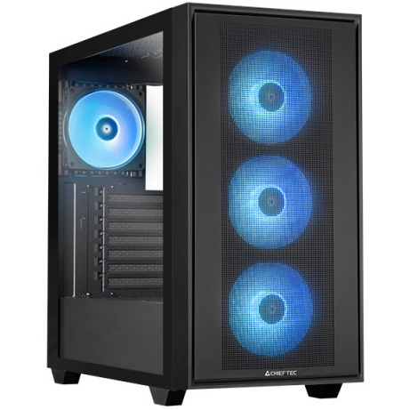 Hunter 3 jest wyposażony w 4 fabrycznie zainstalowane wentylatory A-RGB podłączone do koncentratora sterującego, który umożliwia synchronizację M/B i kontrolę prędkości wentylatora. Dzięki perforowanemu stalowemu panelowi przedniemu i ogólnej, czystej, liniowej konstrukcji, CHIEFTEC Hunter 3 jest gotowy do obsługi nowoczesnych systemów do gier w ponadczasowo eleganckiej obudowie. Kompatybilność z Back-Connect-M/B Panel boczny ze szkła hartowanego 4 fabrycznie zainstalowane wentylatory A-RGB Koncentrator sterujący A-RGB z synchronizacją M/B i kontrolą prędkości wentylatora PWM