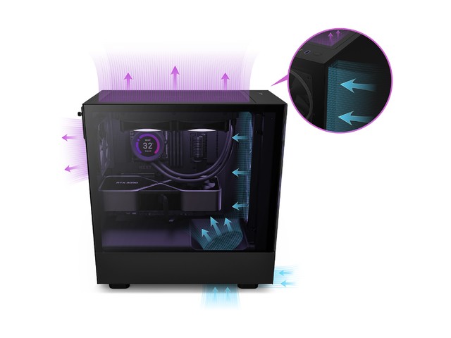 H5 Elite posiada panel przedni ze szkła hartowanego dzięki czemu będziesz mógł zaprezentować oświetlenie wentylatorów RGB, które zostały dołączone do zestawu. Dzięki zoptymalizowanej wydajności termicznej i intuicyjnemu zarządzaniu przewodami, H5 Elite jest idealną obudową dla większości konstrukcji.
