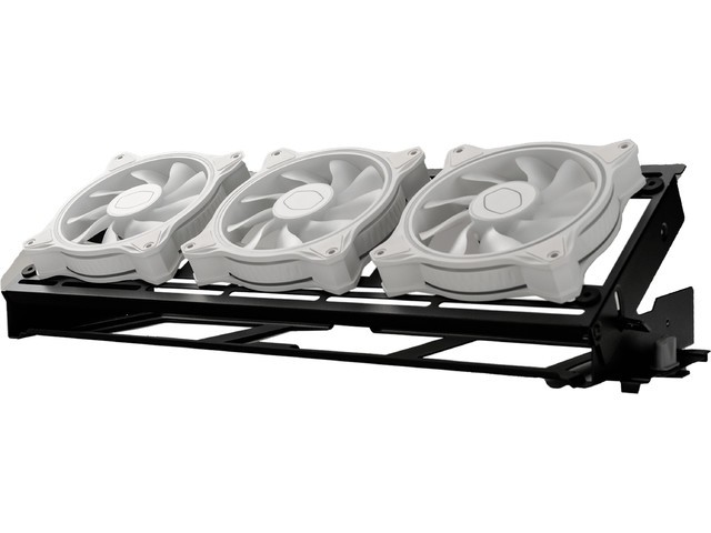 Dwa obrotowe uchwyty na chłodnice/wentylatory w zestawie, aby pokazać komponenty chłodzące pod unikalnym kątem.