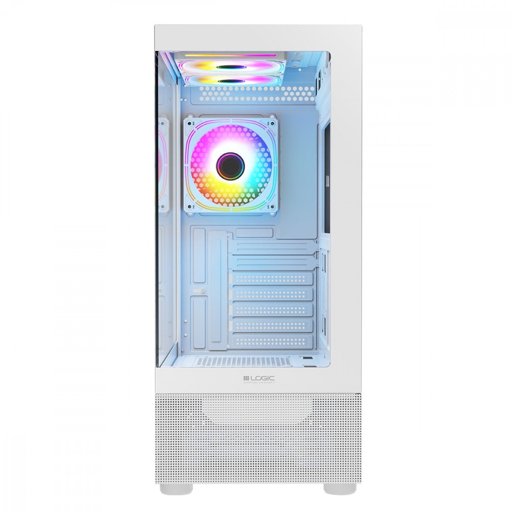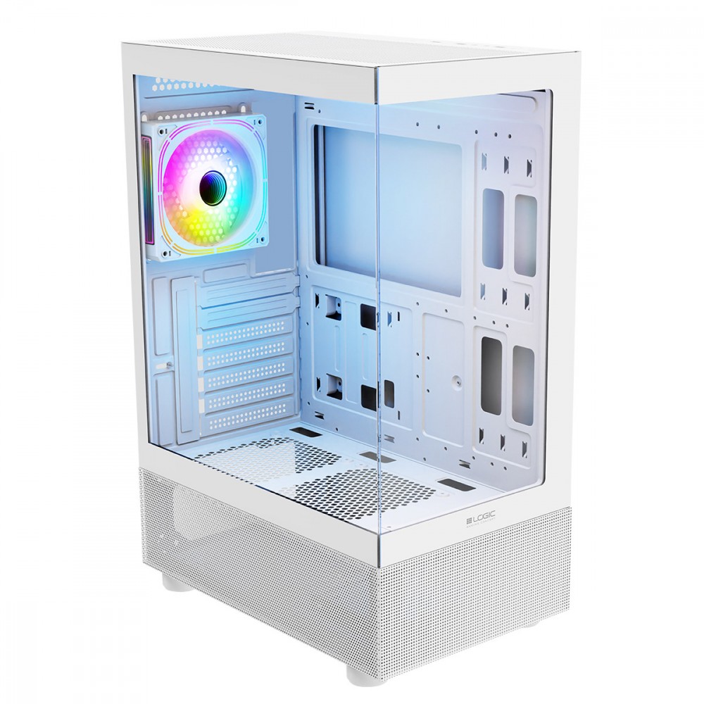 Dlatego jeżeli jesteś miłośnikiem podziwiania zakupionych elementów obudowa Logic Look jest dla Ciebie! Przeszklony panel boczny i przedni w najlepszy możliwie sposób eksponują całe wnętrze komputera. Jednak nie tylko estetyczne rozwiązania przemawiają za tą skrzynką. Są tu również zainstalowane trzy wentylatory 120 mm ARGB z kontrolerem obrotów, do tego złącze USB-C oraz przewiewne elementy w dolnej części konstrukcji, poprawiające obieg powietrza.