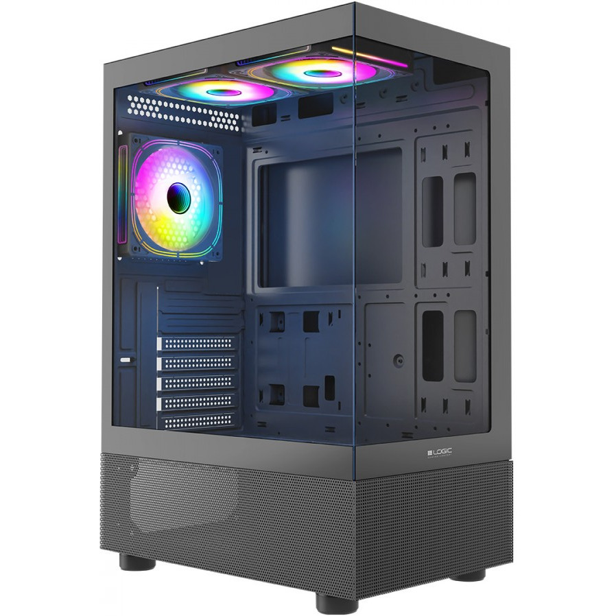Dlatego jeżeli jesteś miłośnikiem podziwiania zakupionych elementów obudowa Logic Look jest dla Ciebie! Przeszklony panel boczny i przedni w najlepszy możliwie sposób eksponują całe wnętrze komputera. Jednak nie tylko estetyczne rozwiązania przemawiają za tą skrzynką. Są tu również zainstalowane trzy wentylatory 120 mm ARGB z kontrolerem obrotów, do tego złącze USB-C oraz przewiewne elementy w dolnej części konstrukcji, poprawiające obieg powietrza.
