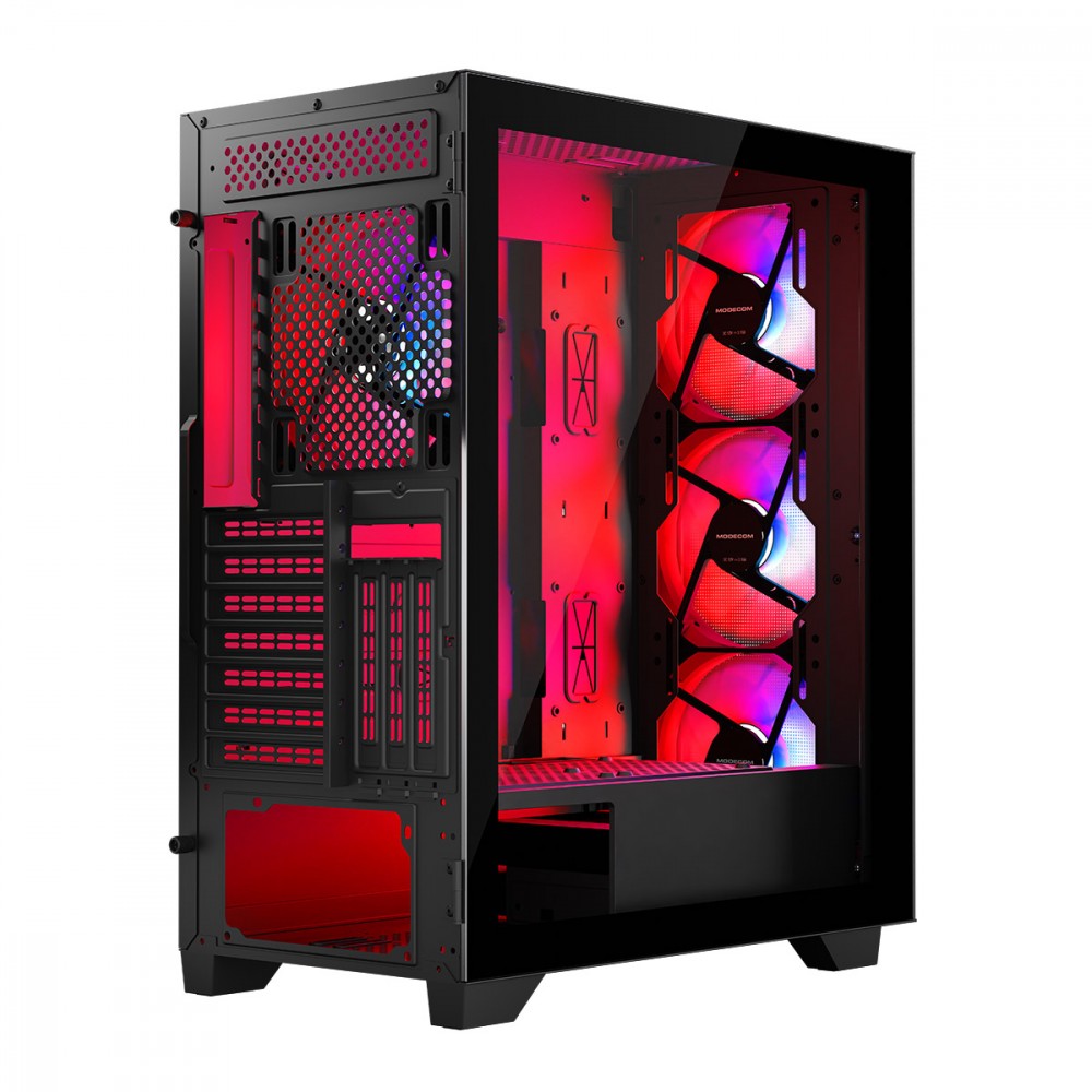 Panel boczny z hartowanego szkła w postaci otwieranych drzwiczek to sama wygoda montażu i czyszczenia komputera. W prosty i wygodny sposób otworzysz drzwiczki i zmontujesz zestaw, wymienisz kości RAM, kartę graficzną i inne komponenty. Nie ma prostszego i wygodniejszego rozwiązania do montażu i modyfikacji wnętrza komputera oraz jego czyszczenia, jak ten zastosowany w obudowie MODECOM Mistral. Hartowane szkło z kolei pozwala wyeksponować zainstalowaną kartę graficzną i inne drogie komponenty.