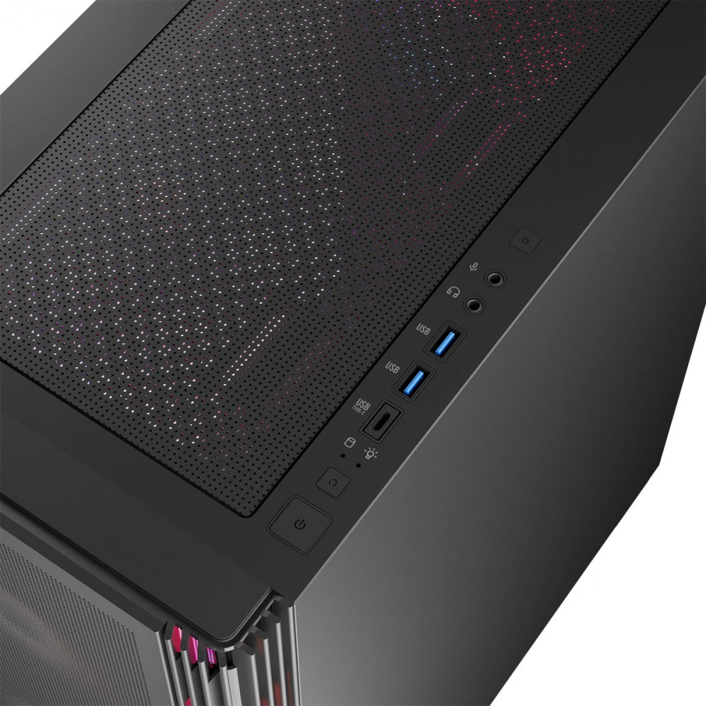 Za optymalny przepływ powietrza odpowiadają przewiewne panele frontowy i górny. Niewielkie otwory z przodu skutecznie doprowadzają chłodne powietrze, powstrzymując jednocześnie drobinki kurzu, podczas gdy przewiewne elementy z tyłu i na górze odprowadzają ciepło. Oto konstrukcja w której optymalny przepływ powietrza wpływa korzystnie na pracę całego komputera.