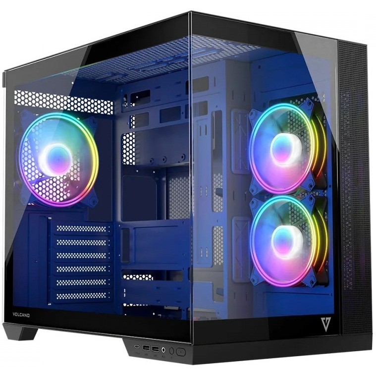 Volcano Panorama to dwukomorowa konstrukcja, która oddziela część serwisową wraz z zasilaczem montowanym pionowo od części właściwej komputera w której montowana jest płyta główna z podzespołami. Dzięki takiemu rozwiązaniu w jeszcze lepszy sposób wyeksponowane są najważniejsze dla graczy komponenty.