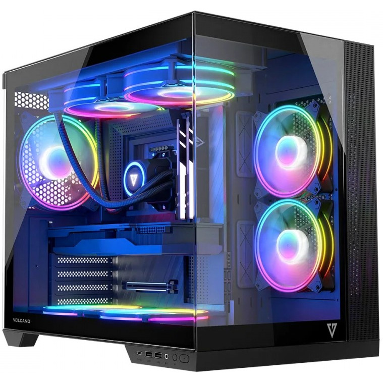 Volcano Panorama to dwukomorowa konstrukcja, która oddziela część serwisową wraz z zasilaczem montowanym pionowo od części właściwej komputera w której montowana jest płyta główna z podzespołami. Dzięki takiemu rozwiązaniu w jeszcze lepszy sposób wyeksponowane są najważniejsze dla graczy komponenty.