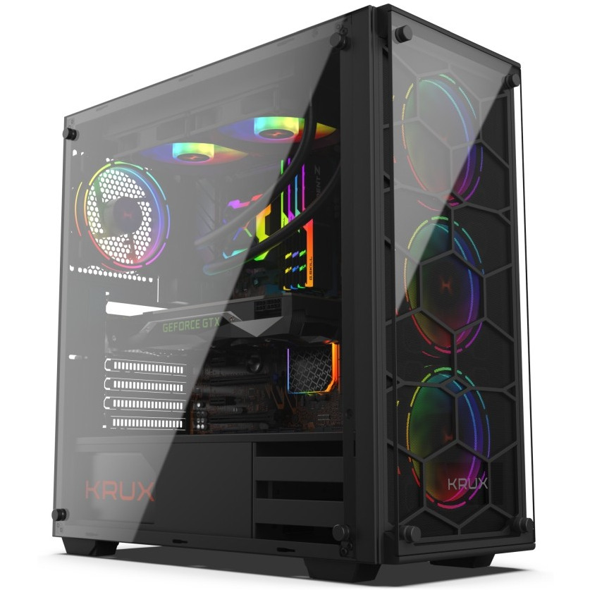Mówiliśmy już o podświetleniu? W zestawie znajdują się 4 wentylatory 120 mm z efektem tęczy, dzięki temu wnętrze twojej maszyny oraz całe stanowisko(i przynajmniej pół pokoju) doświadczy rewii zmieniających się kolorów, niemal jak w kalejdoskopie! Duża piwnica, przestronna kamienica. Pewnie masz już plan czym chcesz wypełnić swoją budę KRUX Leda.