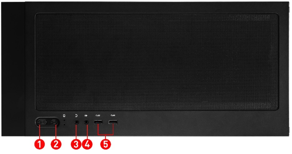 Złącza na przednim panelu: 2 x USB 3.0, 1 x słuchawki, 1 x mikrofon