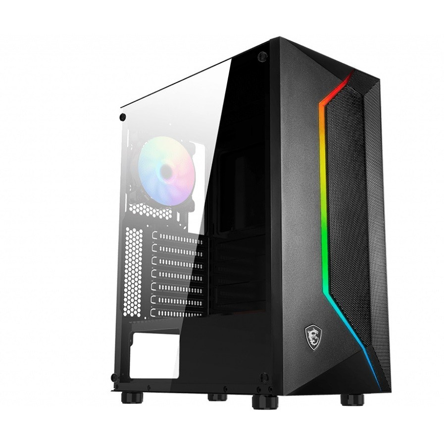 Seria MAG VAMPIRIC 100 to spotkanie równowagi, funkcjonalności i designu. Przedni panel siatkowy umożliwia swobodny przepływ powietrza do obudowy, zapewniając najlepszą wydajność chłodzenia systemu. Doskonałe chłodzenie jest dodatkowo podkreślone przez oświetlenie na panelu przednim, które podkreśla atrakcyjny wygląd i funkcjonalność serii VAMPIRIC 100. Szybko kontroluj kolor wentylatora i efekty świetlne za pomocą przycisku Insta-Light Loop. Przeglądaj profile swobodnie i wybierz ulubiony. Seria MAG VAMPIRIC 100 ujawnia Twój arsenał dzięki bocznemu panelowi ze szkła hartowanego. Uzbrój system w układ chłodzenia cieczą, płytę główną i kartę graficzną firmy MSI, aby uzyskać najwyższy poziom mocy i wydajności. Okno ze szkła hartowanego. W górnych otworach wentylacyjnych znajduje się filtr magnetyczny, który zapobiega przedostawaniu się kurzu do środka, a jednocześnie można go łatwo wyjąć do czyszczenia. Seria MAG VAMPIRIC 100 została zaprojektowana tak, aby skupić przepływ powietrza w układzie, zapewniając niesamowitą wydajność chłodzenia. Możliwość instalacji do 6 wentylatorów.