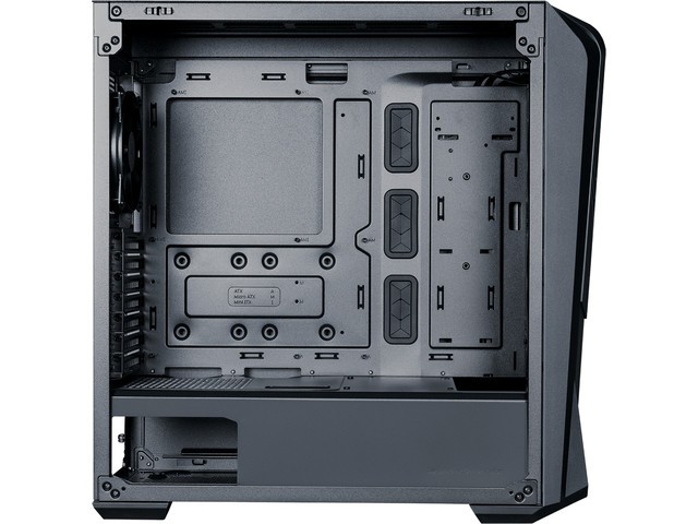 Ikoniczna geometryczna fasada MasterBox zawiera minimalistyczne, inspirowane obwodami elektrycznymi paski ARGB, nadające obudowie stylowy i futurystyczny profil. Oświetleniem ARGB można bez wysiłku zarządzać za pomocą dedykowanego przycisku na panelu I/O.