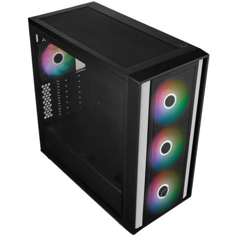 Zainstalowane wentylatory: 1 x 120 mm ARGB (tył), 3 x 140 mm ARGB (przód)
