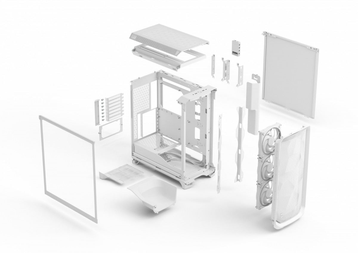 Meshify 3 to wysokowydajna obudowa PC łącząca najwyższej klasy chłodzenie z płynnym, aerodynamicznym designem. Ewolucja naszej klasycznej serii, Meshify 3 zawiera kilka ulepszeń inżynieryjnych zwiększających wydajność oraz trzy potężne wentylatory Momentum. Wersja Ambience Pro RGB dodatkowo poprawia doświadczenie dzięki zintegrowanemu oświetleniu atmosferycznemu ARGB Gen 2 i wentylatorom, które są łatwo kontrolowane za pomocą dołączonego Adjust Pro Hub, korzystając z naszego intuicyjnego oprogramowania opartego na sieci. Dostęp do inżynierii wydajności z dużą wentylacją i przewodnikiem powietrza, który kieruje przepływ powietrza do komponentów, aby poprawić chłodzenie GPU. Podnieś swoje przestrzeń dzięki aerodynamicznemu designowi z panelem przednim z siatki inspirowanym skałą. Popraw swoją atmosferę dzięki zaawansowanemu oświetleniu ARGB Gen 2, w tym animowanemu efektowi startu PC (wersje Ambience Pro RGB). Łatwo dostosuj swoje oświetlenie i wentylatory za pomocą narzędzia konfiguracyjnego bez pobierania, dostępnego za pośrednictwem dołączonego Adjust Pro Hub (wersje Ambience Pro RGB). Zaprojektuj potężny system do gier z miejscem na karty graficzne o długości do 349 mm i kompatybilnością z płytami głównymi E-ATX. Zawiera trzy potężne wentylatory Momentum 14, z łopatkami LCP i prawdziwymi łożyskami FDB dla trwałej wydajności i cichszej pracy (wersje standardowe). f Zawiera trzy potężne wentylatory Momentum 14 ARGB Gen 2, z łopatkami LCP i prawdziwymi łożyskami FDB dla trwałej wydajności i cichszej pracy (wersje RGB i Ambience Pro RGB). Chłodź swoją konstrukcję jeszcze bardziej dzięki górnemu radiatorowi o długości do 280 mm i przedniemu radiatorowi o długości 360 mm, z wyjmowanymi wspornikami dla łatwej instalacji. Ciesz się płynnym doświadczeniem budowy dzięki łatwo zdejmowanym panelom, w tym przesuwanemu panelowi górnemu z zakładką z tkaniny. Łatwo podłącz swoje urządzenia dzięki górnemu I/O z portem USB Type-C 20 Gbps, dwoma portami USB-A i złączem audio. Uzyskaj czyste i schludne wykończenie dzięki czystemu układowi wnętrza z pokrywą kabli i nowymi wyrównywaczami kabli dla łatwego zarządzania.