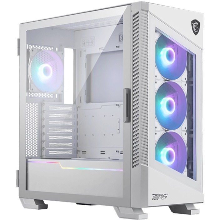 Panel przedni MPG VELOX 100R White składa się z hartowanego szkła, które bez żadnych przeszkód wyraźnie prezentuje oświetlenie ARGB wentylatorów.