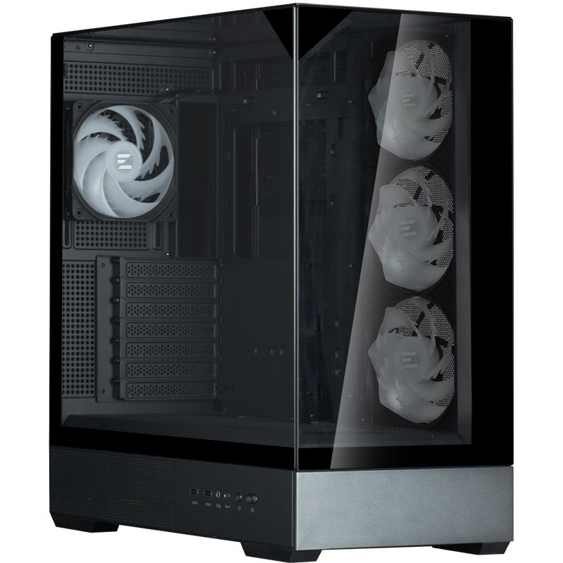 Nowy paradygmat w projektowaniu eliminuje ramę obudowy, zapewniając wrażenie otwartej przestrzeni i niezakłócony widok. Panele ze szkła hartowanego z przodu, boków i na górze tworzą jednolity wygląd.