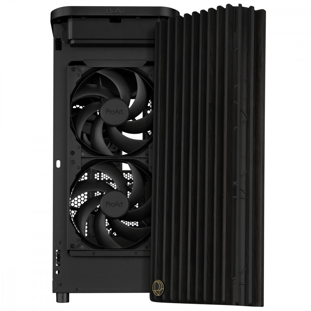 Obudowa ProArt PA401 Wood Edition prezentuje drewniany panel przedni, który tworzy charakterystyczny, elegancki styl, jednocześnie promując zrównoważony rozwój. Użyte drewno jest certyfikowane przez Forest Stewardship Council (FSC) i jest wykańczane w sześcioetapowym procesie. Obudowa może również pochwalić się optymalnym wbudowanym chłodzeniem, z dwoma wentylatorami przednimi 160 mm i jednym wentylatorem tylnym 120 mm, a także zintegrowaną piastą wentylatora, zapewniającą optymalny przepływ powietrza.